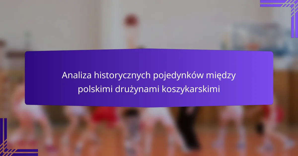 Aby skutecznie analizować historyczne pojedynki między polskimi drużynami koszykarskimi, skup się na zbieraniu kompleksowych danych i identyfikowaniu kluczowych wskaźników wydajności. Obejmuje to badanie wyników przeszłych meczów, statystyk zawodników i dynamiki drużyn, aby wyciągnąć znaczące wnioski.