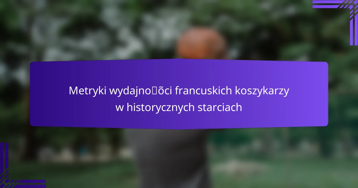 Metriki wydajności francuskich koszykarzy są kluczowe dla oceny ich skuteczności na boisku, obejmując kluczowe statystyki, takie jak zdobywanie punktów, tworzenie gry i ogólny wkład. Historyczne pojedynki odgrywają znaczącą rolę w kształtowaniu tych metryk, ponieważ zawodnicy dostosowują swoje strategie w oparciu o przeszłe spotkania, co prowadzi do różnic w ich wynikach statystycznych. Analizując te metryki, możemy uzyskać cenne informacje na temat umiejętności i wpływu wybitnych francuskich graczy w trakcie ich kariery.