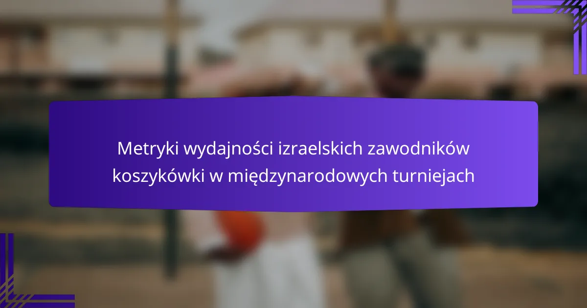 Kluczowe metryki wydajności izraelskich koszykarzy w międzynarodowych turniejach obejmują średnie punktowe, statystyki zbiórek, wskaźniki asyst, metryki defensywne oraz oceny efektywności zawodników. Metryki te dostarczają informacji na temat indywidualnej wydajności oraz ogólnych wkładów drużyny podczas zawodów.